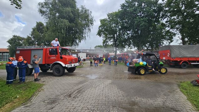 Rein zufällig teilt sich die Jugendwehr Neuenkirchen mit Otterndorf und Nordleda das Teil-Camp. Der Otterndorfer Jugendfeuerwehrwart Michael Liekefett (44) erinnert sich an die Anreise am Sonnabend (2. August 2025) bei zunächst strahlendem Sonnenschein. Doch der einsetzende Regen während der Anmeldung durchnässte die mitgebrachten Utensilien, die noch im Freien standen. "Kissen nass, Schlafsack nass", resümiert Liekefett. Wirklich trocken seien sie bis heute nicht.