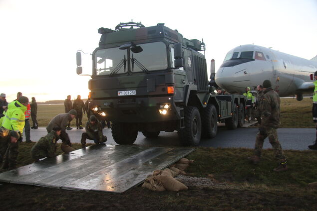 Seit dem Wochenende steht die ausgemusterte Maschine bereit, nahe am Sicherheitszaun. Soldaten haben in der Morgendämmerung den Zaun auf einer Länge von knapp 40 Metern geöffnet. Sie haben große Metallplatten über eine Senke gelegt und Sandsäcke gestapelt. Eine Brücke entsteht, die das 61 Tonnen schwere Flugzeug tragen soll. Ein schwerer Militär-Lkw wartet auf seinen Einsatz.