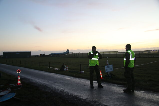 Das Grundstück der Sportfluggruppe Cuxhaven-Nordholz ist seit sechs Uhr morgens militärischer Sicherheitsbereich. Zwei junge Soldaten bewachen den Zugang an der Ringstraße. Absperrband markiert die Grenzen. Dahinter stehen einige "Plane-Spotter", Kameras im Anschlag. Sie wollen sehen, wie das legendäre Aufklärungsflugzeug seinen letzten Weg antritt.