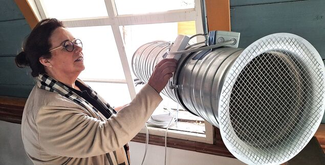 "In Kürze wird rund um das Gebäude, dessen Entstehung auf das Jahr 1653 datiert, ein Graben ausgehoben, um die Fundamente zu versiegeln", berichtet die 62‑Jährige und schaut übers Geländer nach unten. Dort arbeiten Jean Salvagnac und Joscha Caroll, Gesellen der Firma Uhtenwoldt aus Oberndorf, am neuen Elektronikkasten. Hoch über ihren Köpfen rauscht neben der sorgsam verpackten Orgel die Lüftung. Ein silberner Schlauch saugt Tag und Nacht Feuchtigkeit aus dem Inneren des markanten Wahrzeichens. Später wird eine neue Belüftung eingebaut. Was sein muss, muss sein.