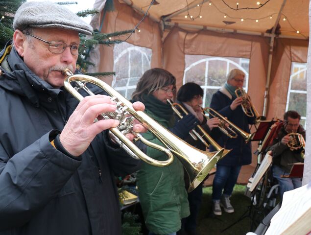 Turmbläser, Flötenspieler und der Olenbrocker Schlüsenchor gestalteten das musikalische Programm. Ortsbürgermeister Christoph Frauenpreiß, Pastor Eric Neumann sowie Hauptorganisator Michael Habben von der Werbe- und Interessengemeinschaft Altenbruch präsentierten zur Eröffnung eine Neuheit: Weihnachtskugeln mit dem Altenbrucher Wappen.