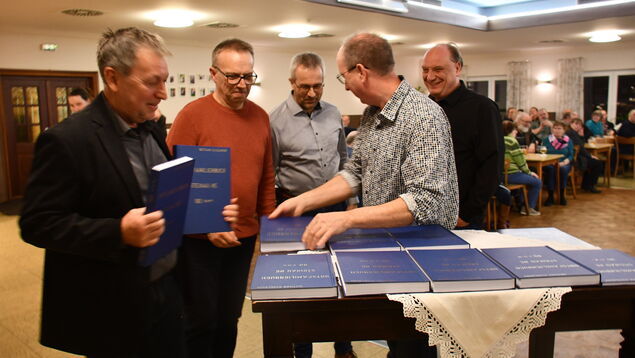 Er hat unzählige Dokumente gesichtet, Tausende Namen aus jahrhundertealten Kirchenbüchern übertragen und schließlich alles auf 4300 Seiten in zehn Büchern zusammengefügt: Sein "Ortsfamilienbuch" präsentierte Dietmar Esselborn jetzt in Steinau.