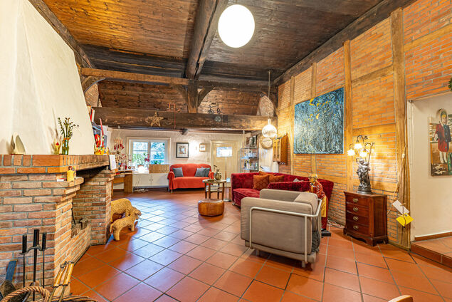 Das Reetdachhaus, das als "renovierungsbedürftig" beschrieben wird, bietet nicht nur 267 Quadratmeter Wohnfläche, sondern auch drei Schlafzimmer und drei Badezimmer. Es gibt einen großen Kamin und einen alten Eisenofen. Beheizt wird das denkmalgeschützte Objekt aber vor allem über eine Ölheizung aus dem Jahr 2017.