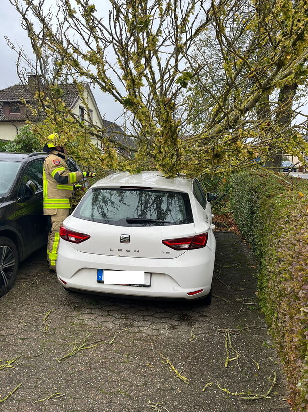 Die Berufsfeuerwehr Cuxhaven meldete am Wochenende keine größeren Schadenslagen. Am Sonntag wurden angebrochene Äste aus einer Baumkrone entfernt und am Schillerplatz ein Fahnenmast gesichert, der zu kippen drohte. Bereits am Freitag fiel in der Papenstraße ein Baum auf ein geparktes Auto. Die Feuerwehr hob den Stamm an, der Wagen konnte anschließend selbstständig wegfahren. Der Schaden blieb gering.