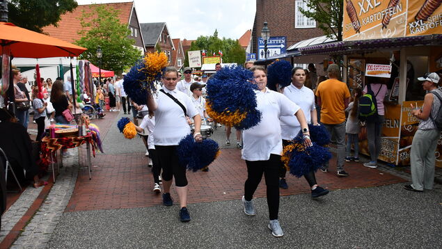 Die Cheerleader und der Spielmannszug Otterndorfer sorgten beim "Lütten Altstadtfest" für reichlich (musikalischen) Wirbel. Foto: Schröder