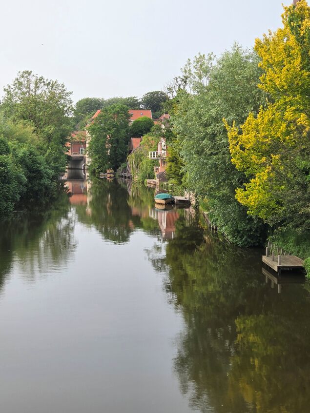 In der Altstadt von Otterndorf lassen sich viele Fotomotive finden. Am Fröbelweg und beim Edeka in Otterndorf finden sich viele Parkplätze. Von dort aus sind es nur wenige Gehminuten. Abseits davon, hinter der Kirche und dem "Himmelreich" folgend führen kleine Brücken über die Medem. Nur etwa 17 Kilometer misst die Medem. Sanft schlängelt sich der kleine Fluss durch Otterndorf bis nach Ihlienworth. Wer hier mit dem Boot unterwegs ist, erlebt stille Ufer, üppiges Grün und mit etwas Glück auch Reiher, Enten oder Fischreiher.