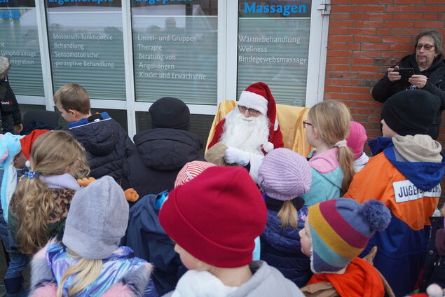 Gebacken wurde von den ersten Vorsitzenden des Fördervereins, Simone Rustrholz und Kelly Thies-Mangels. Neben Weihnachtsdekoration aus Holz gab es auch Gestricktes, Marmelade und Eingemachtes. Das ganze Dorf schien auf den Beinen zu sein. "Um 15 Uhr kommt das Highlight - der Weihnachtsmann", kündigte Bürgermeister Roth an. Mit einer Glocke zog er schließlich über den Platz und die Kinder scharten sich um ihn und seinen goldenen Sessel, um eine Tüte Süßigkeiten zu erhaschen.