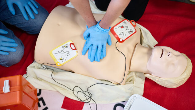 Ein Defibrillator sollte jedoch im Notfall nur dann zum Einsatz kommen, wenn eine notwendige Herzdruckmassage nicht länger unterbrochen werden muss. Optimal sind mindestens zwei Personen, die "Erste Hilfe" leisten. So kann ein Ersthelfer bereits mit der Herzdruckmassage beginnen, während die andere Person das Gerät holt. Und wenn man allein ist? Dann sollten die Herzdruckmassage und ein Notruf Priorität haben, damit insbesondere das Gehirn durch das manuell gepumpte Blut weiterhin mit Sauerstoff versorgt wird.