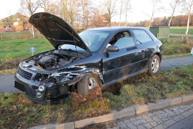 Am Dienstagnachmittag (16. Dezember 2025) gegen 14.30 Uhr wollte eine 90-jährige Autofahrerin aus Odisheim auf Höhe der Kreuzung Oppeln an de Eck in die Straße Auefeld in Richtung Wingst-Westerham abbiegen. Dabei stieß sie mit dem entgegenkommenden Audi A3 einer 38-jährigen Wingsterin zusammen. Mit im Fahrzeug befanden sich drei weitere Personen, darunter ein Kind. Aus bislang ungeklärter Ursache prallte die Fahrerin des VW Polo mit dem Audi heftig zusammen. Der Audi blieb kurz vor einem tiefen, wasserführenden Graben stehen.