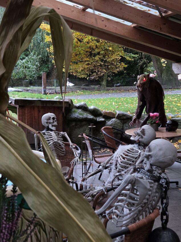Doch auch das Gruseln kam am Halloween-Wochenende nicht zu kurz. Eine menschengroße Ratte lauerte neben dem Eingang, Plastikskelette grinsten von einem Tisch herüber, und aus den Lautsprechern drang schaurige Musik. Immer wieder luden Grusel-Wege mit unerwarteten Dekorationen zu einem kleinen Abstecher ein.