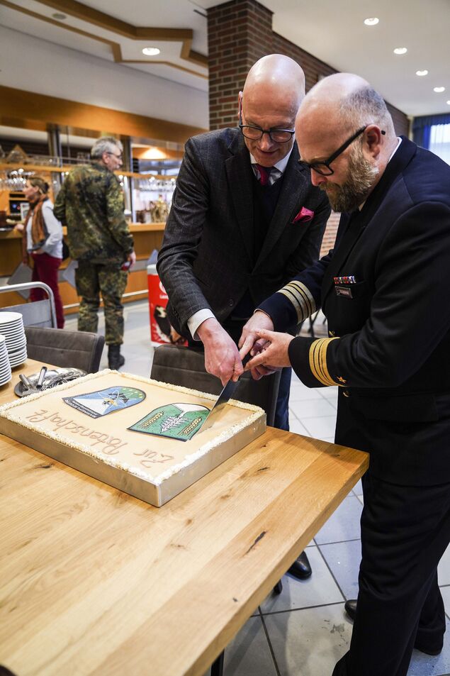 Fregattenkapitän Thomas Szczepanski hob in seiner Rede die enge Verbundenheit mit der Gemeinde Wingst hervor. "Der Stabszug der Stützpunktgruppe pflegt eine langjährige Partnerschaft mit der Reservistenkameradschaft Wingst und Umgebung. Diese Partnerschaft schafft eine fundierte Grundlage für fruchtbaren Austausch mit Zivilgesellschaft und Politik. Dieser Austausch und die daraus erwachsene herzliche Verbundenheit mit der Gemeinde Wingst haben auf beiden Seiten den Wunsch entstehen lassen, dies nun auch formal zum Ausdruck zu bringen.", so der Kommandeur mit Blickrichtung zum Bürgermeister Pawlowski.