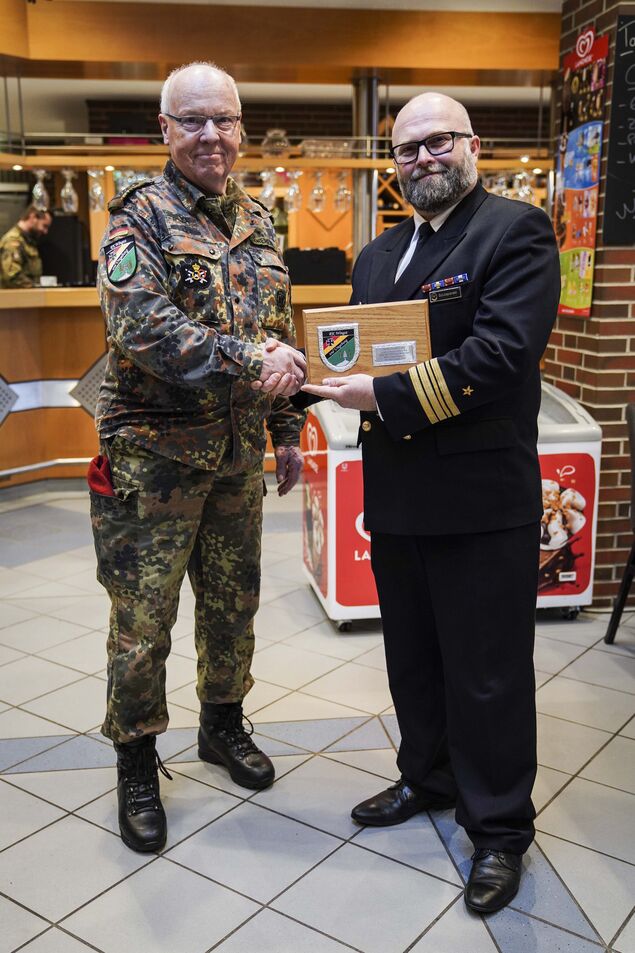 Neben den Wingster Gemeinderatsmitglieder machten sich an diesem Tag denn auch 37 Teilnehmer aus der Reservistenkameradschaft Wingst auf den Weg nach Nordholz. Seit 2016 besteht bereits eine Partnerschaft zwischen dem Stabszug der Stützpunktgruppe und den Wingster Reservisten. Die jetzt besiegelte Patenschaft legt nun ein festeres Band um die Beteiligten und spiegelt die gegenseitige Wertschätzung wieder. Stabsfeldwebel der Reserve Michael Schlobohm erhielt während des offiziellen Verlaufes eine besondere Ehrung.