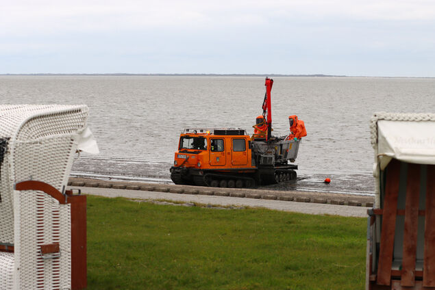 Unterstützt wurde die Gefahrguteinheit in der Übung von einer Drohneneinheit der Feuerwehr Wiesmoor (Landkreis Aurich) sowie von den Feuerwehrtechnischen Zentralen Wittmund und Friesland mit zwei Hägglunds-Kettenfahrzeugen, die problemlos ins Watt fahren können. "Solche Fahrzeuge hält das Havariekommando eigentlich für Ölunfälle an vierzehn Standorten an der deutschen Nord- und Ostseeküste vor", berichtet das Havariekommando.
