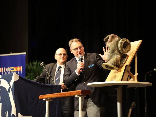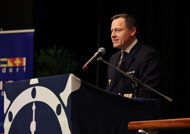 Auf die Festrede folgten der traditionelle Matjes und anschließend die Kapitänsrede von Fregattenkapitän Klaus Lund, Kommandeur der Fliegenden Gruppe des Marinefliegergeschwader 3 "Graf Zeppelin". In seinem Beitrag schilderte er seine Aufgaben und Erfahrungen mit der Seefahrt - ein Alltag, der sich deutlich von dem eines Kapitäns in der zivilen Schifffahrt unterscheidet.