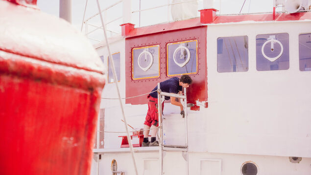 Seit mehr als eineinhalb Jahren ist die "Elbe 1" nicht mehr in Fahrt. Den Liegeplatz an der Alten Liebe hat die "Rote Lady" bereits Ende 2022 gegen den im Neuen Fischereihafen getauscht. Um Geld zu sparen, hat die Besatzung in dieser Zeit so viel wie möglich selbst gemacht - mit ehrenamtlichen Helfern, zwei festen Besatzungsmitgliedern und Bufdis.