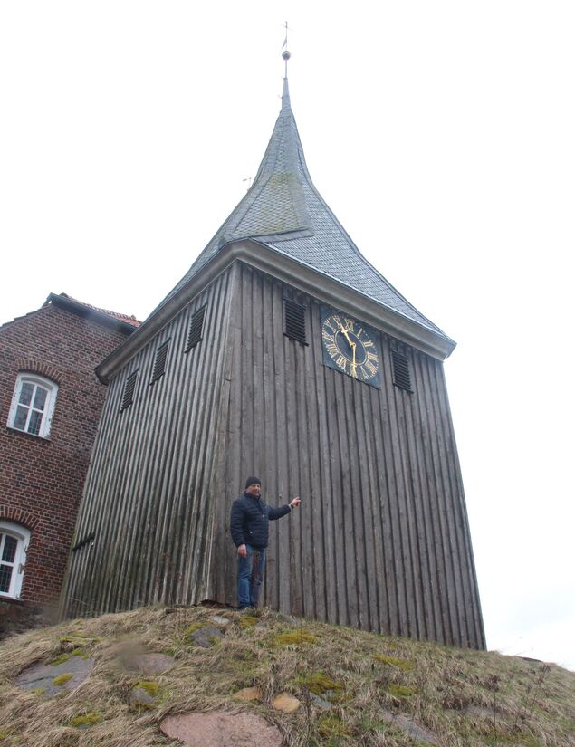 Gebaut wurde das heute noch zuverlässige Präzisionswerk bei der renommierten Firma J.F. Weule in Bockenem bei Hildesheim. Damit die Turmuhr die richtige Zeit anzeigt, klettert der Cadenberger zweimal die Woche in den Holzturm und zieht das Walzenwerk mit der Kurbel per Hand auf, damit es richtig tickt und die Stundenglocke im Kirchturm schlagen zu lassen. Angesichts der Zeitumstellung in der Nacht zu Sonntag, ist er dieses Wochenende zusätzlich in Verantwortung, damit im Ort die Uhrzeit stimmt.