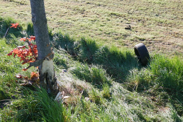In Höhe Mittelstenahe-Sticht kam der Fahrer, vermutlich durch die tief stehende Sonne, nach rechts von der Straße ab, durchfuhr etwa 60 Meter den Grünstreifen, überfuhr einen Begrenzungspfahl, touchierte einen Baum, wobei der linke Vorderreifen mit samt Achsaufhängung abriss, durchfuhr einen Graben und kam schlussendlich auf einer Wiese zum Stehen.