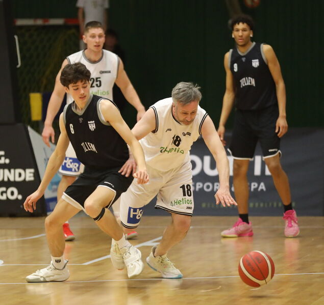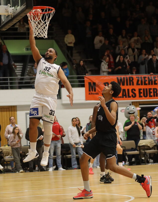 Auch auf dem Spielfeld zeigten die BasCats von Beginn an, dass sie sich die Abschiedsparty von der jungen Hamburger Mannschaft nicht vermiesen lassen wollten. "Wir haben uns viel vorgenommen, wollten Hamburg nicht ins Spiel kommen lassen. Und das hat super geklappt", sagt Dennis Tiedemann mit klitschnassem T-Shirt. Kurz zuvor bekam er eine unfreiwillige Dusche von seinen Spielern auf dem Parkett. Diese Szene stand sinnbildlich für die gute Stimmung im Team - und auch drumherum. Die BasCats waren über die gesamte Spielzeit die klar bessere Mannschaft, angetrieben vom bärenstarken Deon McDuffie. Bereits zur Halbzeit betrug der Vorsprung fast 20 Punkte (44:35). In der zweiten Hälfte ging es so weiter. Mit viel Spielzeit für alle Akteure, die auf dem Spielbericht standen. Auch der 46-jährige Lüders warf sich in jede Aktion, sammelte Rebounds und punktete selbst. "Olli hat seine Chance mega genutzt. Der hat das wirklich toll gemacht", war Tiedemann voll des Lobes. Doch nicht nur Lüders. Alle Akteure zeigten an diesem Tag eine beachtliche Leistung.
