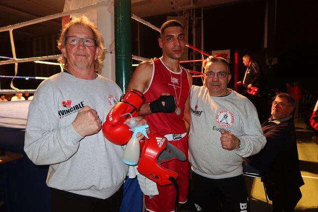 Der 19-jährige Mohamad Ghazal (Mittelgewicht) stand in einem Einlagekampf gegen Emirhan Sari vom Hamburger BC Heros im Ring. Gegen den erfahreneren und körperlich stärkeren Gegner (13 Kämpfe, acht Siege) zeigte der gebürtige Syrer Mut, bewegliche Finten und unerschütterlichen Kampfgeist. Mutig und mit unerschütterlichem Herz ging er nach vorn, angefeuert vom Publikum. Doch am Ende musste das Handtuch geworfen werden. "Mohamads Mut macht mich stolz", betonte sein Trainer Eugenio Gomez-Casado.