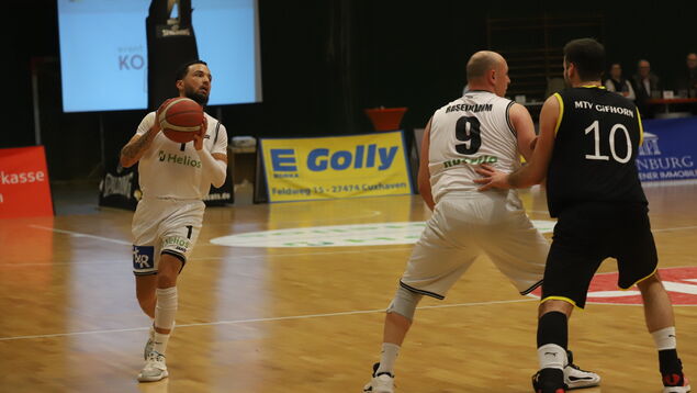 Rot-Weiss Cuxhaven BasCats - MTV Gifhorn 100:76 (12:20, 29:25, 33:17, 26: 14): Traditionell stehen die Zuschauer bis die Cuxhavener Korbjäger ihren ersten Punkt erzielen. Das dauerte diesmal bis in die 4. Minute der Partie, als Janes Griesmann zum 2:8 traf. Der punktlose Tabellenletzte aus Gifhorn erwischte einen hervorragenden Start in das Spiel, traf reihenweise Dreier und führte nach sieben Minuten mit 15:2. Da hatte BasCats-Coach Dennis Tiedemann längst seine erste Auszeit genommen. Er und auch die Zuschauer konnten ihren Augen nicht trauen, denn selbst die sichersten Drei-Punkte-Werfer der Cuxhavener scheiterten immer wieder aus der Distanz und auch die Freiwürfe verfehlten ihr Ziel. Und das sollte lange Zeit so bleiben. Immerhin brachten Eddie Seward und Bakary Coulibali ihr Team bis zur Viertelpause auf 12:20 heran.