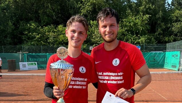 Pünktlich zum Turnierstart kam die Sonne zum Vorschein - und sorgte für perfekte Bedingungen auf der Tennisanlage des TC Altenwalde. Zum sechsten Mal lud Organisator Marcel Kolbenstetter zur Cuxhavener Fußball-Tennis-Meisterschaft ein. Insgesamt 60 Zweierteams und zahlreiche Zuschauer sind diesem Aufruf gefolgt. So viele Mannschaften und auch so viele Zuschauer wie nie zuvor in der noch jungen Vergangenheit der Veranstaltung. "Zu den Finalspielen waren rund 700 Zuschauer auf der Anlage", so Kolbenstetter. Und die sahen einen kurzweiligen und spannenden Wettkampf. Erst duellierten sich die Mannschaften in den Gruppen, anschließend in den Finalspielen. Schon vor dem Turnier war klar, dass es eine neue Siegermannschaft geben würde, da die Seriensieger der vergangenen drei Veranstaltungen, Hero Ferlemann und David Thalmann, nicht mit dabei waren. Der Titel blieb aber in den Händen von Rot-Weiss Cuxhaven, denn am Ende durften Aaron Schulz und Felix Linnenkohl jubeln. Beide spielen ebenfalls für den Landesliga-Aufsteiger. Sie besiegten im Finale Jonas Ubber und Jan-Hendrik Kuczorra in zwei Sätzen (11:9, 11:5).