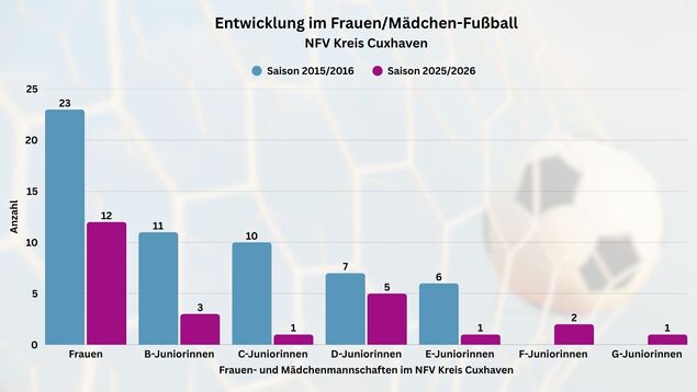In den Ferien wird bei den meisten Vereinen nicht trainiert. Doch der NFV-Kreisvorsitzende Thorsten Holz weiß, worüber er spricht. "Von einer Euphorie war und ist bei uns im Kreis nicht viel zu spüren. Das war schon nach der letzten Fußball-EM so, als wir erst im Finale von den Engländerinnen gestoppt wurden. Es gibt nur wenige Vereine im NFV-Kreis Cuxhaven, die Frauen- oder Mädchenmannschaften haben und wenn, dann wird größtenteils mit 9er-Teams gespielt, da es nicht so viele Aktive für einen normalen Kader gibt. Generell ist es schwierig, den Spielbetrieb aufrechtzuerhalten. Wenn es gut laufen würde, dann würden wir nicht mit so vielen 7er- und 9er-Teams agieren, sondern Großfeldmannschaften an den Start bringen."