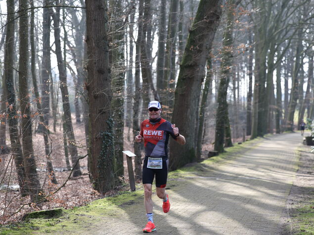 Am Sonnabend (7. März 2026) starteten um kurz nach zehn Uhr elf Läuferinnen und Läufer zum Marathon. Weitere 32 Leute traten zum Staffel-Marathon an - aufgeteilt auf acht Teams. "Wir haben ideale Bedingungen", betonte auch Organisator Thomas Hargus. Vor zehn Jahren hat er den alle zwei Jahre stattfindenden Lauf ins Leben gerufen. In diesem Jahr ging er in die fünfte Runde. Selbst läuft Hargus nicht mehr mit. "Zu alt" sei er inzwischen, sagte er lachend. Auf dem Olymp war er überall - er guckte auf die Zeiten, besorgte den Läufern Essen und Trinken und war für jeden ansprechbar.