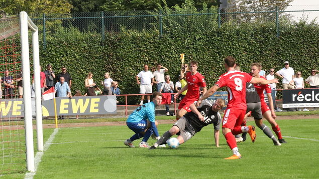 Der Schiedsrichter ließ nachspielen und in der sechsten Minute der Nachspielzeit dann doch noch der 1:1-Ausgleich. Niklas Menke drang nach schöner Einzelleistung in den Strafraum ein, zog wuchtig ab und traf. Keeper Dustin Lammerich hatte keine Abwehrchance. 60 Sekunden später ertönte der Schlusspfiff. Während sich die FCC-Aktiven in den Armen lagen und den Punktgewinn bejubelten, ließen die Rot-Weissen die Köpfe hängen.
