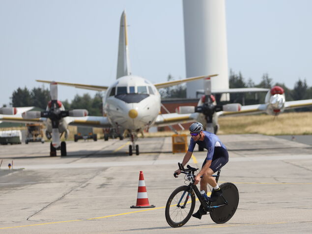Dieser Wettkampfort ist etwas Besonderes: Von Freitag bis Sonntag, 13. bis 15. Juni, verwandelt sich der Marineflugplatz in Nordholz wieder in eine große Rennstrecke. Dann steht das Radrennen "Bike Navy" an, bei dem die Teilnehmerinnen und Teilnehmer nicht nur auf das Rad steigen, sondern auch zu Fuß über den Flugplatz laufen können. Und hier gibt es noch Startplätze zu gewinnen.