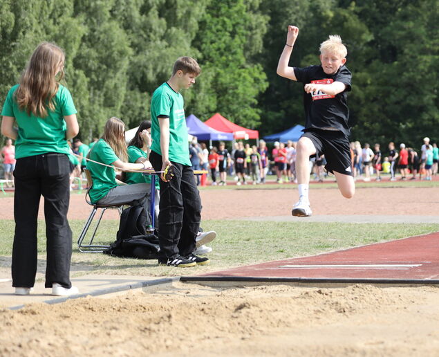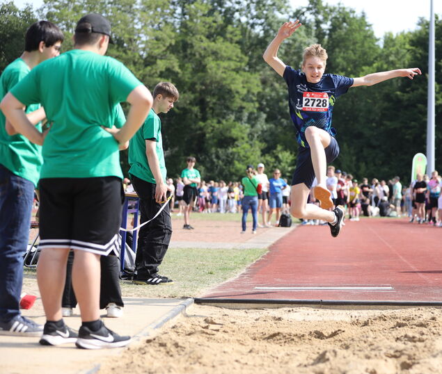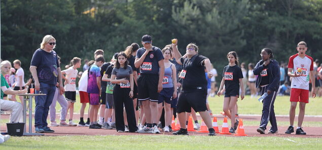 Während es bei den Wettkämpfen der Grundschüler am ersten Tag sehr wuselig zuging, war die Stimmung an Tag zwei mit den Fünft- bis Achtklässlern deutlich ruhiger. Im Gegensatz zum ersten Tag standen bei den größeren Schülern die klassischen Leichtathletikdisziplinen im Mittelpunkt - werfen, laufen, springen. Mit den Pendelstaffeln endeten am Mittwoch die diesjährigen Kreisschulmeisterschaften.