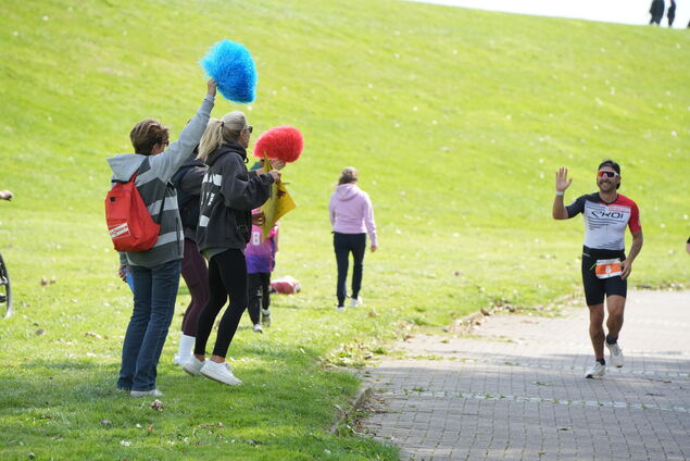 Rund um den See, auf dem Deich und entlang der Strecke sammelten sich über den Tag hinweg immer mehr Zuschauer, die dem Spektakel beiwohnten und die Sportler anfeuerten. Teilweise sogar mit selbstgebastelten Schildern und Pom Poms.