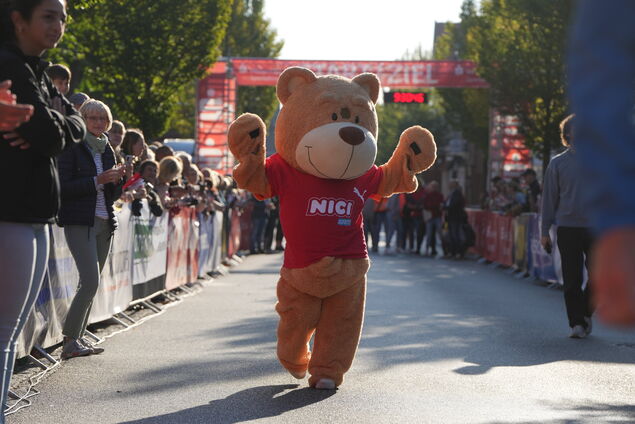 Der Mocki-Bär heizt die Zuschauer ein. Foto: Keck