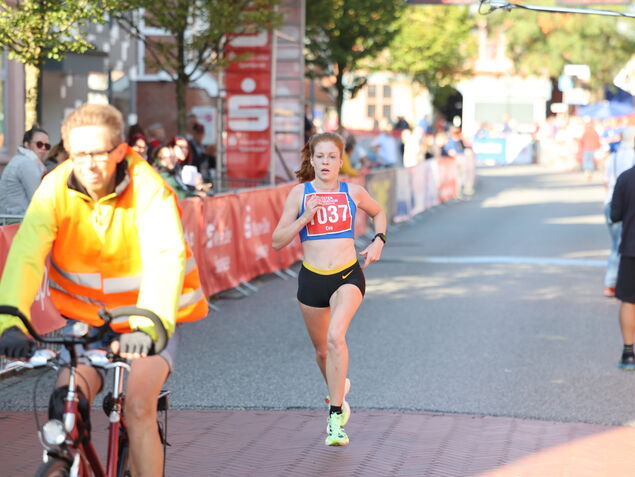 Eva Dieterich kam beim 10-Kilometer-Lauf als erste Frau ins Ziel. Foto: Larschow