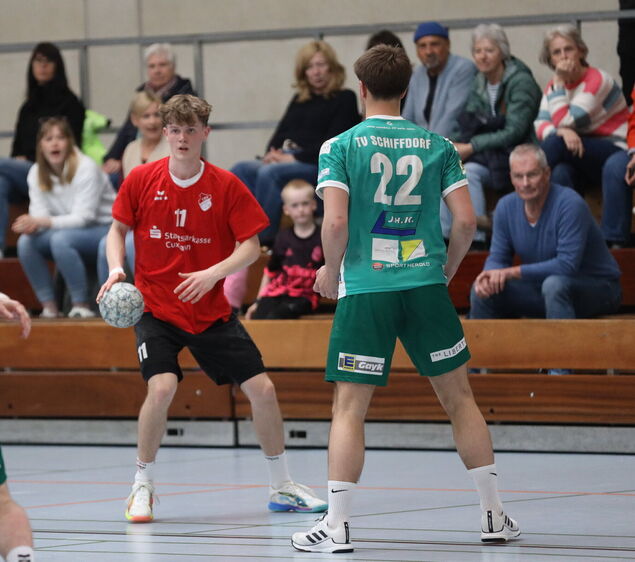 Fast 200 Zuschauer sahen einen ganz starken Auftritt des TSV - trotz der Ausfälle der beiden besten Werfer, Finn Habich und Matthis Schriefer. Dafür sprangen andere in die Bresche und übernahmen Verantwortung. Einer davon war der erst 17-jährige Louis Tiedemann, der die Rolle von Habich in der Mitte übernahm. "Das war auch für mich ungewohnt. Doch es hat ganz gut geklappt", sagte er nach dem Spiel grinsend. Acht Tore erzielte er und war damit bester Werfer des Spiels. Der zweite überragende Akteur im Angriff war der 20 Jahre ältere Marc Multhauf, der schon reichlich Erfahrungen in höheren Klassen gesammelt hat. Neben seinen sieben Toren bereitete er viele Treffer seiner Nebenleute mit einigen raffinierten Anspielen vor. Das Prunkstück an diesem Tag war aber einmal mehr die Abwehr des TSV, in der die beiden besten Werfer auch eine entscheidende Rolle spielten. Tiedemann kümmerte sich in Manndeckung um Jannik Göbel, den Topwerfer der ersten Mannschaft in der Oberliga. Multhauf verteidigte robust im Mittelblock. "Die Abwehr hat den Ausschlag gegeben", sagte Schnautz. Die Altenwalde schafften es, dass die beste Offensivmannschaft der Liga in der zweiten Hälfte nur neun Tore warf.
