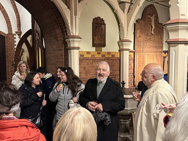 Pfarrer Christian Piegenschke dankt besonders dem Förderverein der Herz-Jesu-Kirche und dessen Vorsitzenden Rainer Hönick. Dieser bekräftigte beim anschließenden Empfang, wie viel der Verein mit einem Monatsbeitrag von nur einem Euro bereits für diese kleine Kirche mit ihrer großen Seele erreicht habe.