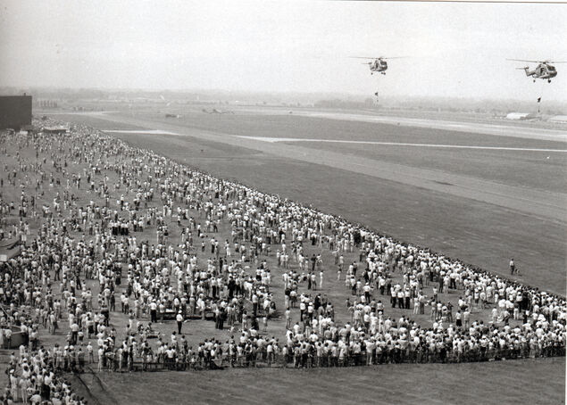 8. Juli 1984: Tag der offenen Tür mit 70.000 Besuchern, 40 Flugzeugtypen aus neun Nationen und Massen-Fallschirmabsprung von 40 Fallschirmjägern aus Wildeshausen.