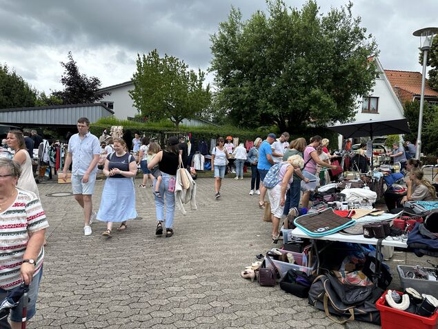 Bei anfangs strahlendem Sonnenschein schoben sich die Gäste an den Ständen vorbei durch die Straßen. Zwischen zahlreichen privaten Anbietern präsentierten sich rund um die Schule zahlreiche Vereine, Institutionen und Firmen mit Spiel- und Spaßaktionen und zahlreichen gastronomischen Angeboten. Auf dem Schulhof und neben der Kirche gab es Schattenplätze zum Ausruhen, Essen und Trinken.