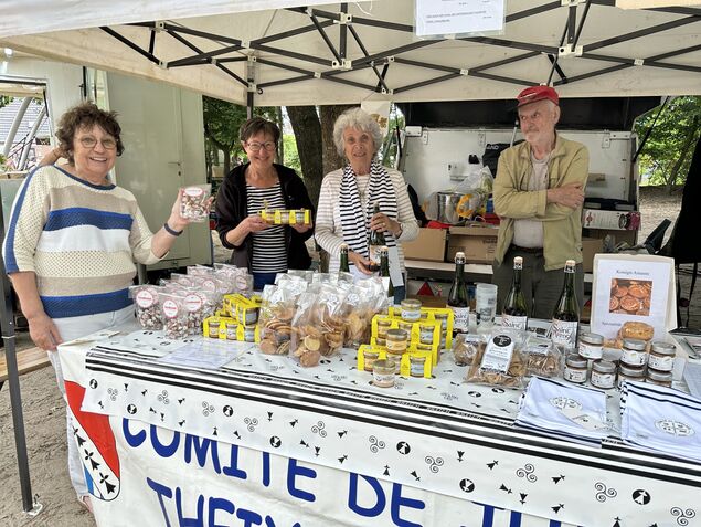 Ganz besonders freute sie sich über den Besuch einer Abordnung der Partnergemeinde aus Theix-Noyalo, die extra den langen Weg aus der Bretagne angetreten hatte. Die Freunde hatten sich für ihren Stand das Auto mit lokalen Köstlichkeiten wie bretonischen Salzkaramell-Bonbons vollgeladen.