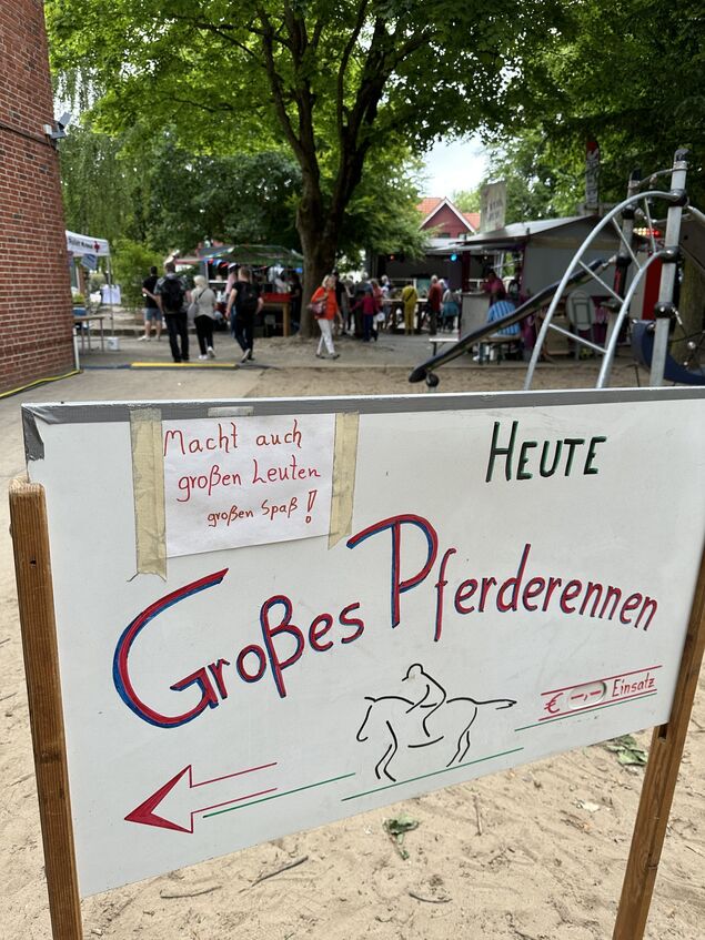 Ansonsten machte der Flohmarkt dem auf einer Einkaufstasche zu lesenden Spruch "Nix gesucht und viel gefunden" alle Ehre. Der Förderverein des Voltigiersports in Holte-Spangen lud Kinder ein, Hufeisen zu dekorieren und machte gleichzeitig Werbung für sein Sommerfest am 12. Juli. Die Feuerwehr präsentierte nicht nur ihre Fahrzeuge, sondern demonstrierte auch ihr fachgerechtes Eingreifen zum Beispiel bei einer Fettbrandexplosion, einer brennenden Gasflasche oder einem Gebäudebrand.