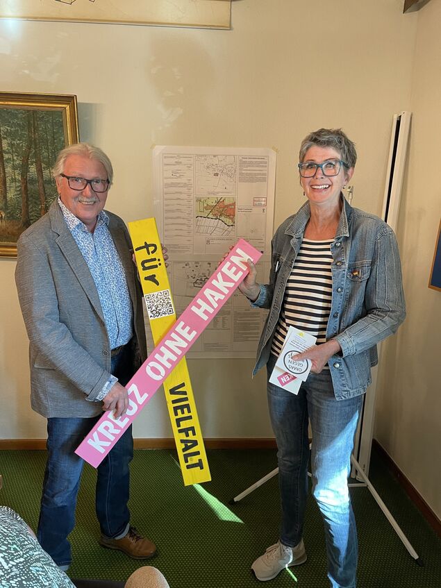 Begonnen hatte die Sitzung mit dem Besuch der "Omas gegen Rechts" Cuxhaven, die dem Ortsrat ein "Kreuz ohne Haken" mitbrachten. Dieses soll in Altenwalde als Symbol des Widerstands gegen sich in die Gesellschaft einschleichende sogenannte "völkische Siedler" angebracht werden.