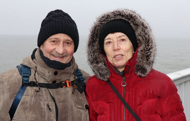 Dunkle Wolken liegen über dem Hafen, Regentropfen prasseln aufs Oberdeck. Nicht unbedingt das ideale Wetter für einen Ausflug an die Alte Liebe. Dennoch tummeln sich etliche Besucherinnen und Besucher auf der Aussichtsplattform an diesem verregneten Februarnachmittag. Claudia und Peter Karmann aus Ingolstadt sind regelmäßig in Cuxhaven. Warum? "Wegen der guten Luft, der freundlichen Menschen und zum Schiffe gucken", sagt Peter Karmann. Ein Spaziergang zur Alten Liebe gehört für die Urlauber aus Oberbayern zum Pflichtprogramm. Die Pläne der Hafengesellschaft Niedersachsen Ports (NPorts), das Wahrzeichen zu sanieren und aus Gründen der Barrierefreiheit eingeschossig zu gestalten, lehnt das Paar ab. "Die Alte Liebe sollte so bleiben, wie sie ist. So kennen wir sie, so mögen wir sie", sagt Claudia Karmann.