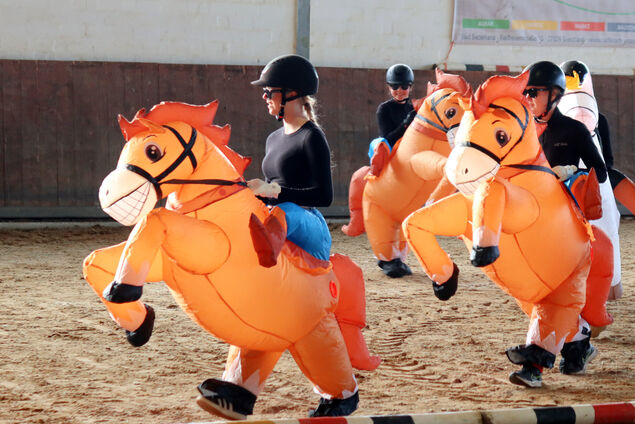 Für ordentlich Gelächter sorgte die Spaßnummer "Jump & Dog", bei der sich Reiter, Mensch und Hund ein Wettrennen lieferten. Und als wäre das nicht schon genug gewesen, stahlen die Pony-Kinder mit ihren knallbunten Plastikpferden allen die Show: Mit viel Charme und einer ordentlichen Portion Fantasie zauberten sie eine Pferdeshow auf die Bühne, die irgendwo zwischen Manege und großer Reitkunst lag.