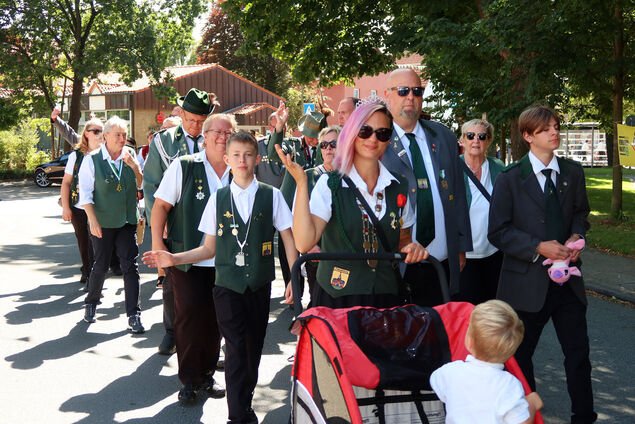 Die Stimmung war bombastisch und die Handys liefen heiß. Mit klingendem Spiel und vertrauten Schützenliedern erhellten "Watt‘n Brass" und das "Blasorchester Aumund-Vegesack" die Ohren ihrer Zuhörer. Im Festzug marschierten vergnügt die Abordnungen vieler befreundeter Vereine. Sage und schreibe 13 Fahnen wurden gezählt.