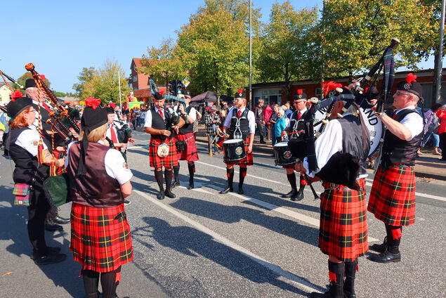 Kaum war der Applaus verklungen, marschierten die "Moorland Pipes and Drums" aus Wilhelmshaven auf. Dudelsäcke im Schottenrock mitten in Altenwalde? Klingt verrückt, klang aber großartig.
