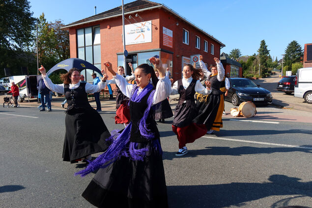 Und weil es noch bunter werden durfte, sorgte "Xuventude Galega", die Galizische Jugend, mit spanischen Folklore-Rhythmen für südländisches Flair auf der Straße.