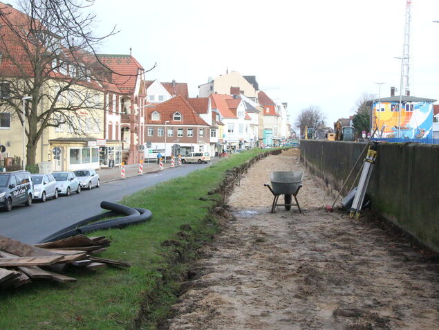 "Das machen sie immer", so die "Stadtgrün"-Vertreterin, nach deren Dafürhalten man die Wurzeln der Rosskastanien durchaus schützen könnte. Grubel ist auch der Meinung, dass die Bepflanzung, die im Bereich der auf das 'Deichband' führenden Rampe vorgesehen ist, um die Bäume "herum" angelegt werden könnte.