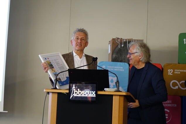 "Wir dürfen heute stolz sein", betonte der Schulleiter der BBS, Manfred Runge. Die Berufsbildende Schule in Cuxhaven erhielt am Donnerstag (16. April 2026) die Auszeichnung als Biosphärenschule.
