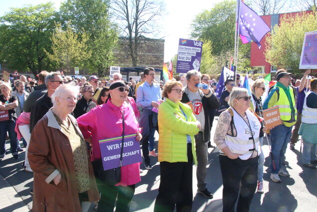Rund 1250 Menschen zählt die Polizei auf dem Rathausplatz, die Veranstalter des "Bündnis für Respekt und Menschenwürde" und Organisator Gunnar Wegener sprechen sogar von bis zu 2000 Teilnehmern. Unterstützt von prominenten Rednern, Musikern und vielen Gästen aus der Stadt und Region, setzen sie ein kraftvolles Zeichen für Demokratie und Menschenrechte - friedlich, kreativ und entschlossen.
