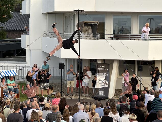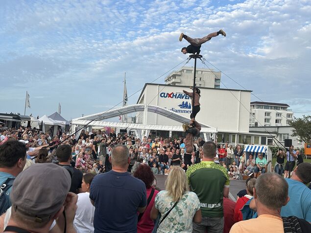 Vier Tage lang wurde in Duhnen der Deich zur Zuschauertribüne und die Promenade zur Bühne. Statt in Richtung Wattenmeer und Sonnenuntergang richteten sich die Blicke auf Straßenkunst und eine bunte Bummelmeile. Schluss ist erst Sonntagabend.