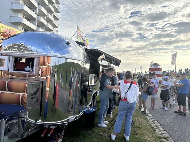 Ebenso viel Neugier erzeugte die kulinarische Vielfalt, zumal der mit der Zusammenstellung des Gastro-Angebots beauftragte Cuxhavener Gastronom und Veranstalter Hakan Bingöl eine Reihe von Foodtrucks in die kulinarische Meile einbezogen hatte. So machten unter anderem koreanische Corndogs, Smashburger, mexikanische Snacks, Churros und Flammlachs der klassischen Auswahl von Crêpes und Bratwurst Konkurrenz.